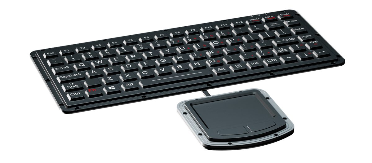 K-TEK-M270-FN-BL-ML+M73TP — промышленная герметичная клавиатура из силиконовой резины с интегрированным сенсорным тачпадом, предназначенная для работы в тяжёлых условиях эксплуатации. Конструкция соответствует классу защиты IP65 (передняя панель) и устойчива к воздействию влаги, пыли, масел и механических нагрузок. Клавиатура оснащена 87 основными клавишами и 2 клавишами мыши, включая 12 функциональных клавиш (F1–F12) в верхней строке. Используется технология контактных переключателей carbon-on-gold с ходом клавиши 1,50 ± 0,10 мм, обеспечивающая точный, плавный и бесшумный ввод данных. Антимикробное покрытие устойчиво к химическим веществам и легко очищается. Комбинация FN + CLEAN позволяет временно блокировать клавиатуру для санитарной обработки без отключения от компьютера. Задняя панель выполнена из усиленного алюминиевого сплава, обеспечивающего прочность, экранирование и удобное размещение кабеля. Клавиатура снабжена регулируемой белой подсветкой и интегрированным промышленным герметичным тачпадом с высокой точностью позиционирования. Соответствует стандартам MIL-STD-810F (высокая/низкая температура, давление, влажность, вибрации, удары, температурные перепады, пыль, плесень, соляной туман, солнечное излучение и т.д.) и MIL-STD-461G (EMC, EMI, EMS, ESD — опционально). Проектирована с учётом военных требований по надёжности, ремонтопригодности, тестируемости, совместимости и устойчивости к окружающей среде.