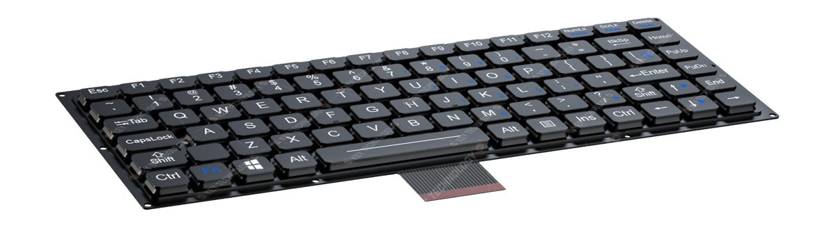 K-TEK-M280-FN-BL-FC-KC-DM ультратонкая 87-клавишная клавиатура с классом защиты IP67, полностью герметичная и влагозащищённая. Построена на основе ультратонкой печатной платы dot matrix Flexible Printed Circuit и полужёсткой нержавеющей стальной задней пластины. Имеет 12 функциональных клавиш (F1–F12) в верхней строке, совмещённые цифровые функции на буквах, регулируемую белую подсветку и комбинацию FN + CLEAN для блокировки клавиатуры при очистке. Поверхность выполнена по технологии P+R (пластиковые колпачки + резина), устойчива к большинству химических веществ и жидкостей. Применяется технология carbon contact + FPC carbon-on-gold key switch с ходом 1.50 ± 0.10 мм, что обеспечивает высокую точность ввода данных, отсутствие залипаний и пропуска клавиш. Соответствует стандартам MIL-STD-810F (температура, давление, влажность, вибрация, удары, перепады, дождь, соль, пыль, грибок, солнечное излучение) и MIL-STD-461G (опция).