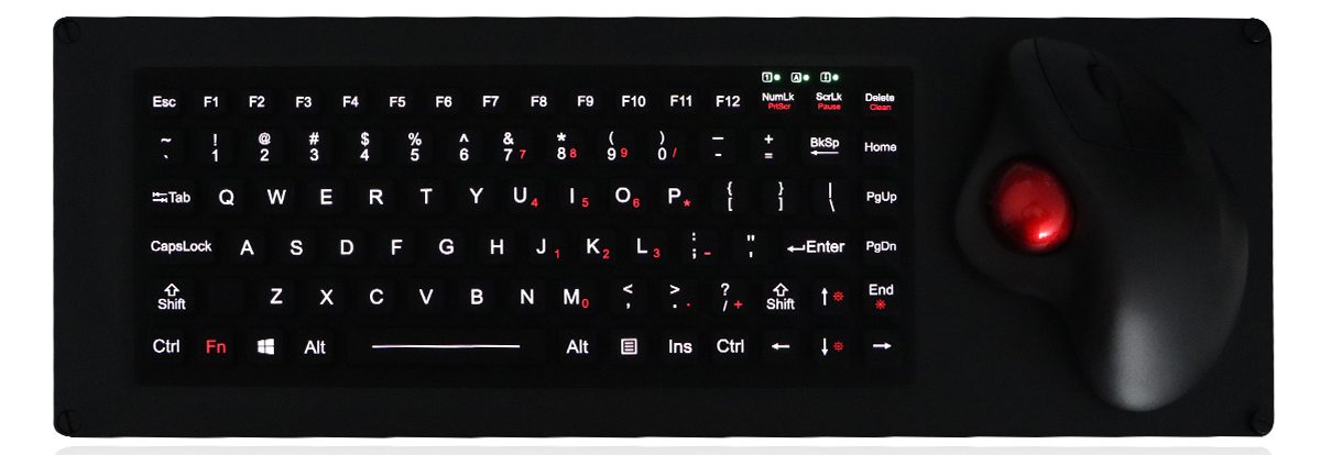 K-TEK-M425-OTB-FN-BL промышленная силиконовая клавиатура с трекболом