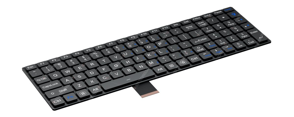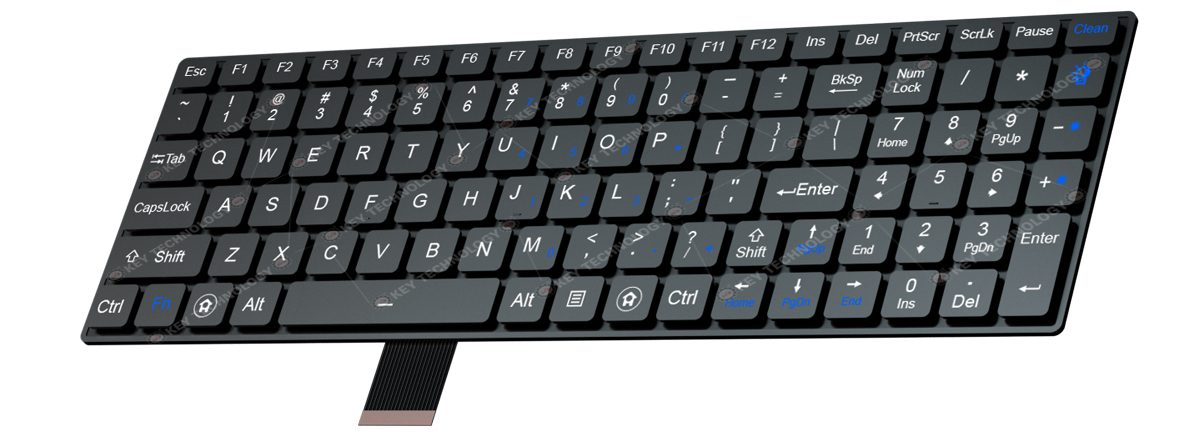 K-TEK-V340KP-FN-BL-SC-FC-ML-DWP Промышленная ультратонкая военная клавиатура с ножничным механизмом и цифровым блоком. 103 клавиши, включая функциональные клавиши F1–F12 и цифровую клавиатуру, защищены по стандарту IP67. Оснащена запатентованной технологией ножничных переключателей с ходом 1.20±0.10 мм, обеспечивающей точный и быстрый ввод данных без шума, залипаний или пропусков. Поверхность устойчива к химикатам и жидкостям, имеет антимикробное покрытие. Встроенная гибкая печатная плата FPC гарантирует долговечность и стабильность работы. FN+Clean комбинация позволяет блокировать клавиатуру при очистке. Включает регулируемую подсветку (белая по умолчанию, опции — красная, зелёная, жёлтая). Клавиатура K-TEK-V340KP-FN-BL-SC-FC-ML-DWP внешне напоминает ноутбучную за счёт ультратонкого дизайна и низкого хода клавиш, но на самом деле это встраиваемая промышленная клавиатура с панельным монтажом и защитой IP67. FPC-шлейф (Flexible Printed Circuit), видимый на фото, используется вместо обычного USB/PS2 кабеля. Такой гибкий шлейф позволяет компактно интегрировать клавиатуру внутрь корпуса устройства и подключить её через контроллер к USB или PS/2 интерфейсу.
