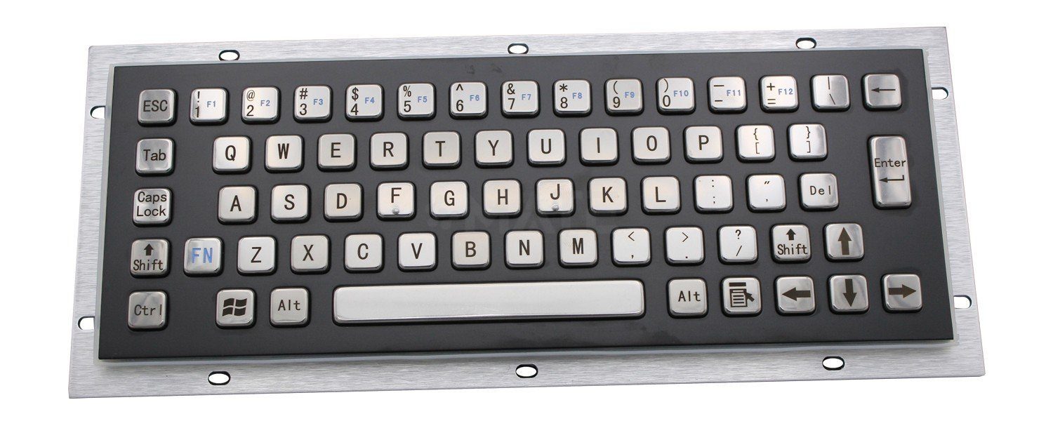 Клавиатура поддерживает функциональные клавиши F1–F12, устойчива к влаге, соляному туману и жиру, подходит для эксплуатации в помещениях и на открытом воздухе.