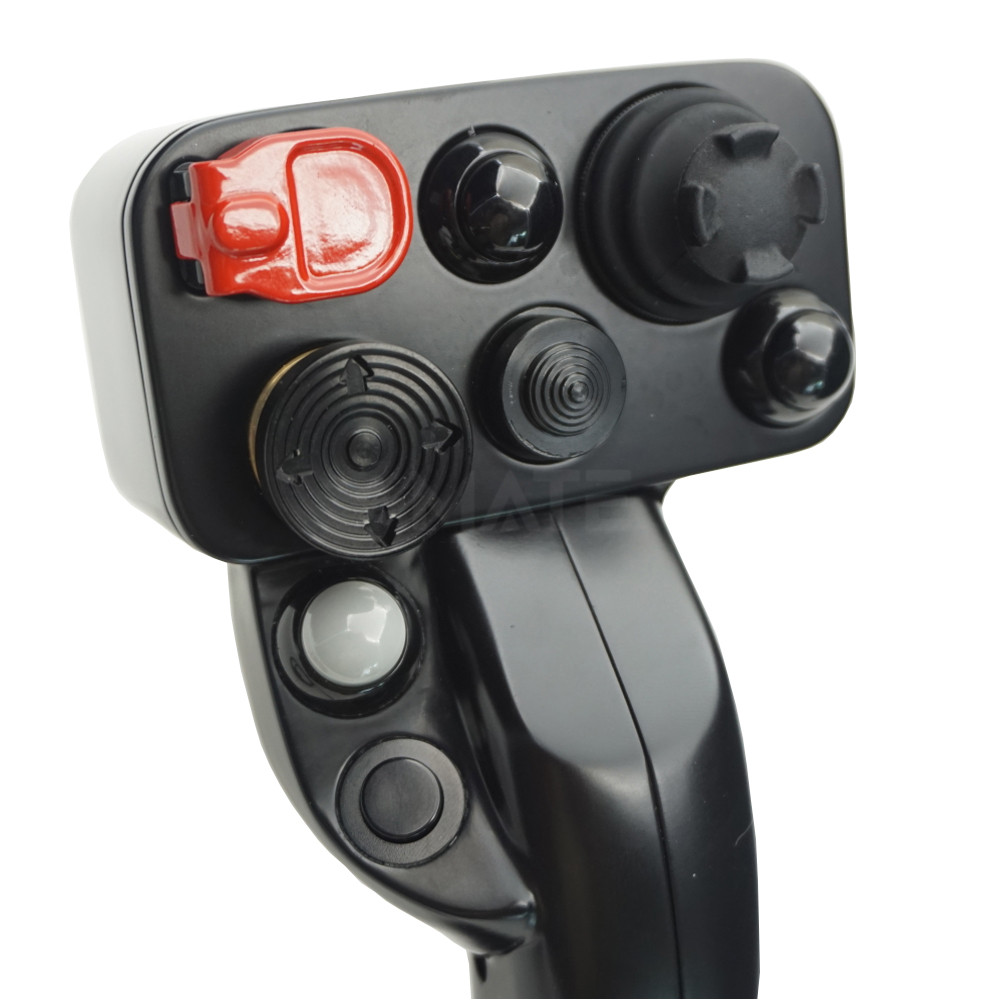 шесть кнопок с самовозвратом, курковый триггер, четырёхпозиционный переключатель и дополнительные элементы управления. Такое сочетание позволяет настраивать управление под конкретные задачи оператора — от перемещения и позиционирования до активации режимов, подтверждения команд и аварийных действий.