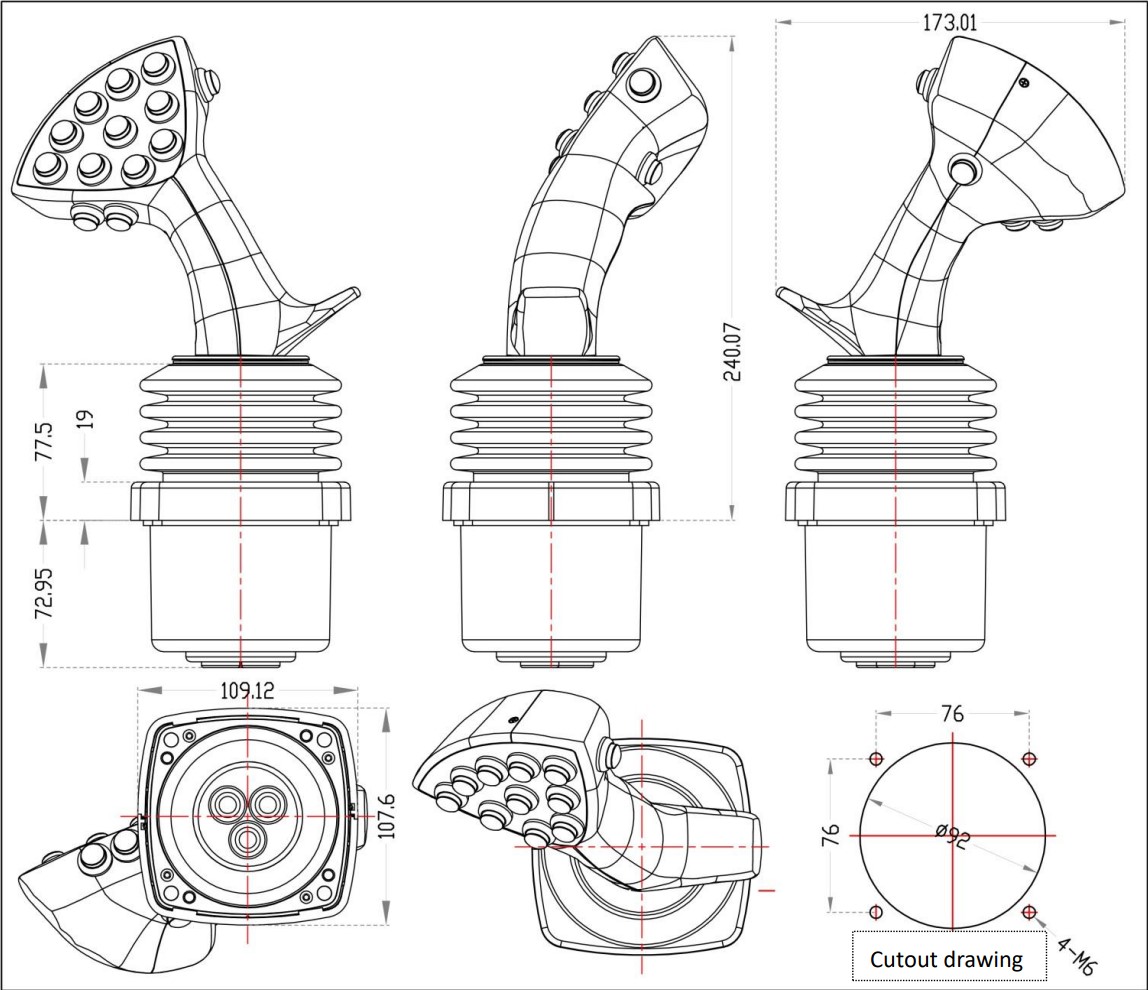 MKF-JS11 промышленный многоосевой джойстик с эффектом Холла, предназначенный для установки в панель. Корпус выполнен из нержавеющей стали и алюминиевого сплава. Конструкция оснащена пружинным возвратом в центр и немецким высокоточным датчиком Холла с линейной коррекцией по всему температурному диапазону. Эргономичный дизайн обеспечивает плавное управление и длительный срок службы. Джойстик отличается высокой надёжностью и устойчивостью к внешним воздействиям, что делает его подходящим для сложных промышленных и ответственных систем управления.