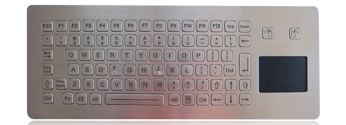 K-TEK-B361TP-FN-BL-DWP компактная промышленная антивандальная клавиатура из нержавеющей стали с тачпадом и динамической защитой IP65 для надежной работы в самых сложных условиях эксплуатации. Модель оснащена 86 клавишами, включая 2 кнопки мыши, и встроенным прочным тачпадом для быстрого и точного позиционирования курсора.