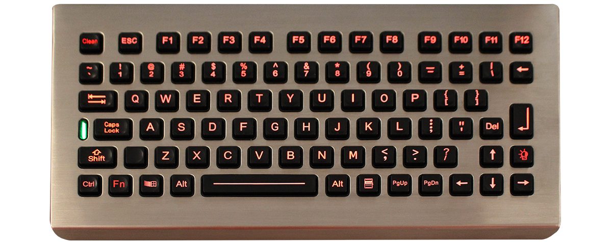 Корпусная (Desk-Top) морская промышленная клавиатура с защитой IP68, ударопрочным исполнением. Содержит 82 клавиши, включая верхнюю линию F1–F12, на основе надёжной технологии «углерод по золоту» с ходом 1,50 мм, обеспечивающей тихий ввод и чёткий отклик. Имеется сочетание FN + CLEAN для блокировки клавиш при очистке без отключения от ПК. Есть регулируемая красная подсветка для работы в затемнённых условиях.