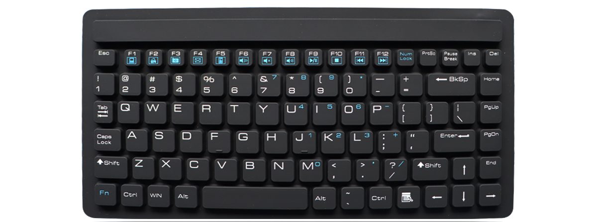 На верхней линии расположены функциональные клавиши (F1–F12). Версия для настольного размещения, легко моется и дезинфицируется.