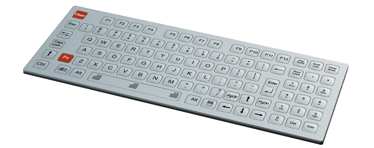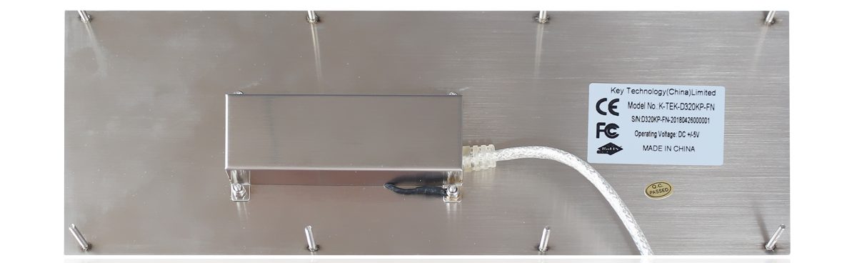 K-TEK-D320KP-FN компактная промышленная мембранная клавиатура с классом защиты IP65, предназначенная для эксплуатации в условиях повышенной влажности, загрязнения и механических воздействий. Оснащена 97 клавишами, включая цифровой блок и функциональные клавиши F1–F12 в верхнем ряду для удобного управления. Используется технология переключателей Gold-on-Gold (золото на золоте) с коротким ходом 0.45 ± 0.05 мм, обеспечивающая надёжный ввод и отличное тактильное ощущение. Функция FN + CLEAN позволяет временно заблокировать клавиатуру для санитарной очистки без её отключения от системы. Рабочая поверхность выполнена из антибактериального, устойчивого к истиранию и химическим воздействиям полиэстера, гладко интегрированного в панель. Вся электроника защищена стальным экраном и задней панелью из нержавеющей стали, обеспечивающей электромагнитную защиту и механическую жёсткость. Монтаж осуществляется с верхней стороны панели с помощью резьбовых шпилек и герметизирующей прокладки.